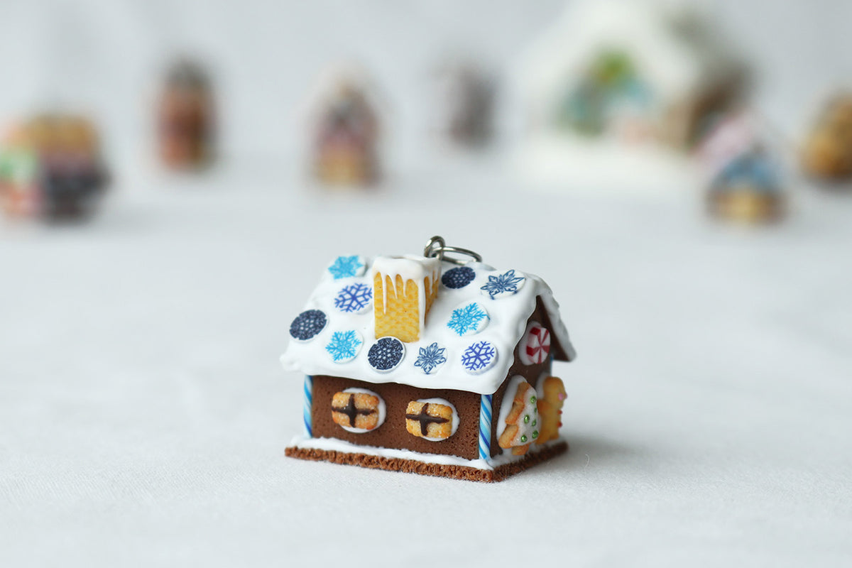 Handmade polymer clay Christmas gingerbread house necklace. Made in USA